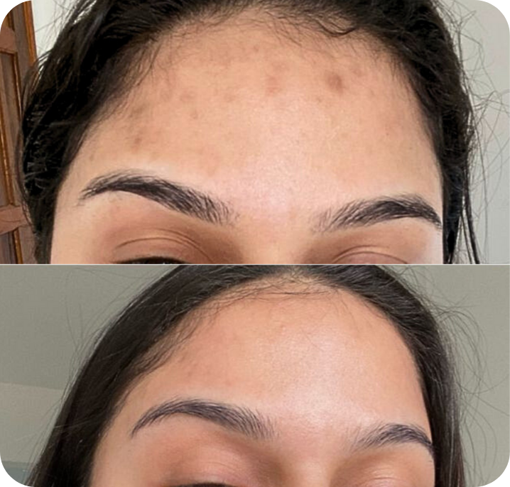 L’Acide Kojique bloque la production de la mélanine, et la Niacinamide agit sur la régulation pigmentaire pour estomper les taches et uniformiser le teint. Les AHA et PHA favorisent le renouvellement cellulaire pour éliminer les anciens pigments foncés encore présents sur la peau