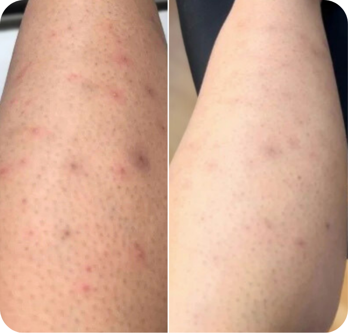 - Anti-inflammatoire : elle réduit la réponse inflammatoire de la peau. Les vaisseaux sanguins responsables de la rougeur se décontractent et les marques s'estompent